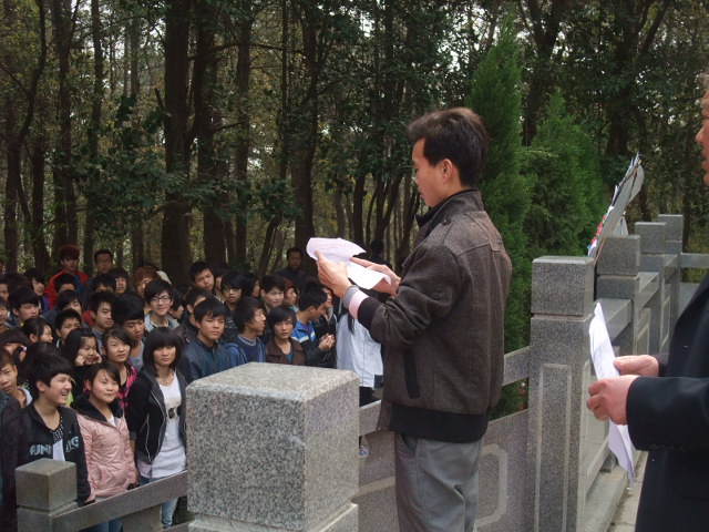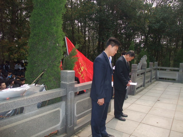 上午8点30分,在校团委组织下,全校师生怀着崇敬的心情,排着整齐的队伍来到革命烈士陵园纪念碑前。扫墓纪念活动,由叶海林老师主持。他宣布祭扫烈士墓纪念活动正式开始后,一阵清脆而猛烈的鞭炮声响起,两位学生代表庄重地向纪念碑献上了花篮,全体师生向纪念碑庄重地鞠躬并默哀三分钟,以寄托师生们对革命烈士的哀思。在活动上,高主任详细介绍了革命烈士们的英雄事迹:“在这里长眠的革命烈士们威震赣北,打土豪、除恶霸、斗地主、分田地,在大革命时期,他们发动群众,宣传革命道理,大革命失败后,在白色的恐怖环境中,他们仍然坚持地下斗争,组织群众,为民除害”。程处长在颂扬革命烈士为民族、为国家英勇抗战,奋不顾身精神的同时,号召全体学生向革命先烈学习,爱家乡、爱人民、爱祖国,积极投入到学习中来,学好本领,报效祖国。