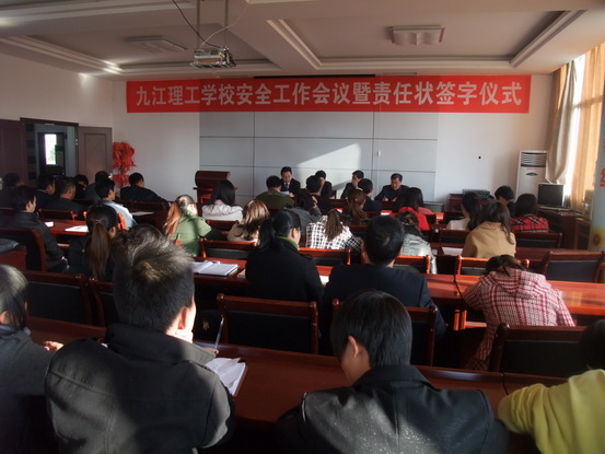 会上副校长、学校与学生安全工作领导小组组长卢作陆同志作了动员报告,董事长助理涂学富同志宣读学校关于学校与学生安全工作实施方案,最后,校领导与部门负责人、部门负责人与各有关岗位责任人和教职工层层签订了安全责任状。
