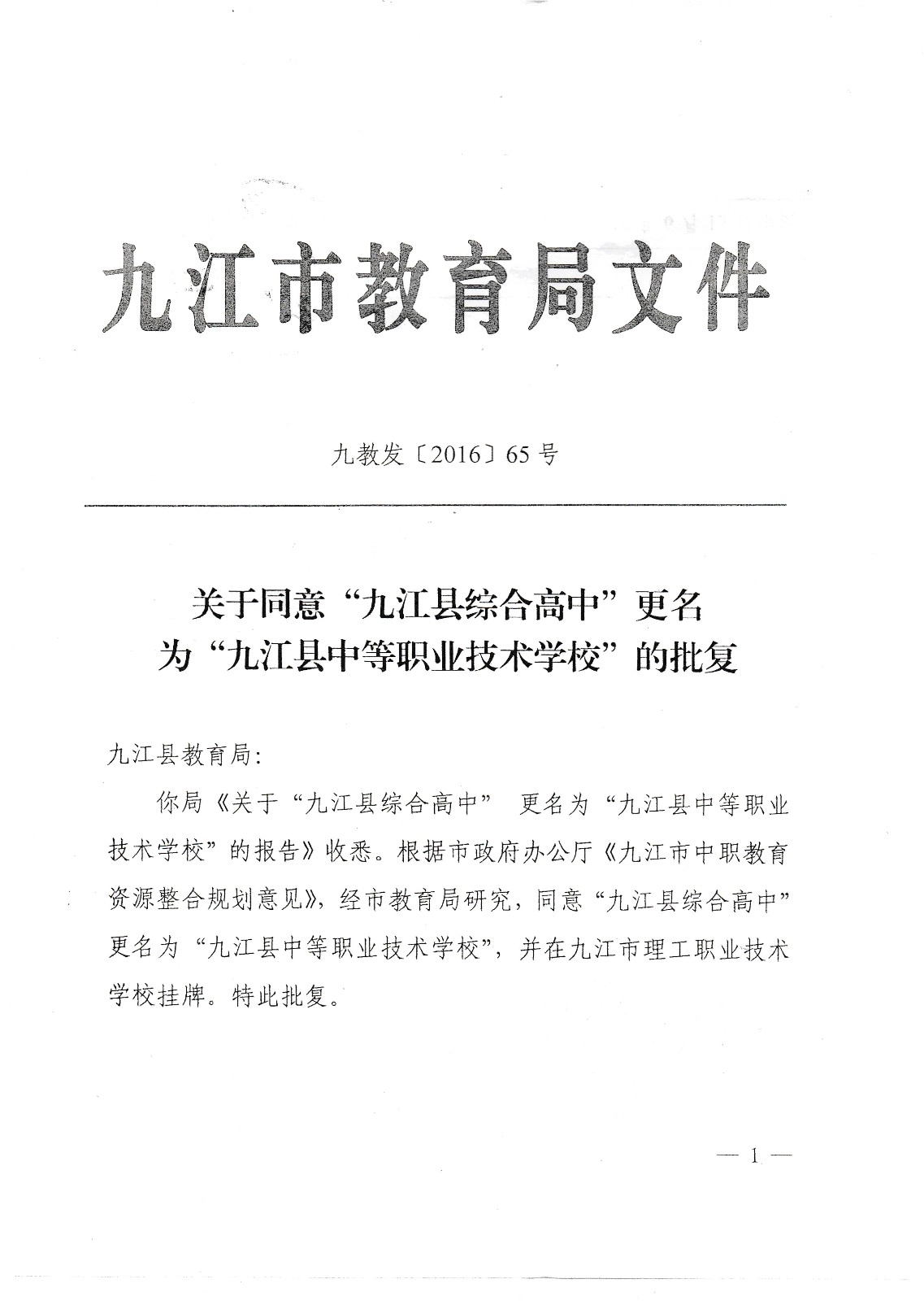 九江市理工职业技术学校是江西省达标中职学校,九江县人民政府合作共建单位。根据我市中职教育资源整合规划要求,九江县职业高中、九江县育英学校职高部并入九江理工学校,九江县综合高中将整体转入九江理工学校。经市教育局批准,九江县综合高中更名为“九江县中等职业技术学校”,并在九江理工学校挂牌。学校将实行“两块牌子、一套人马”的管理体制,形成资源共享、优势互补的合作发展格局。